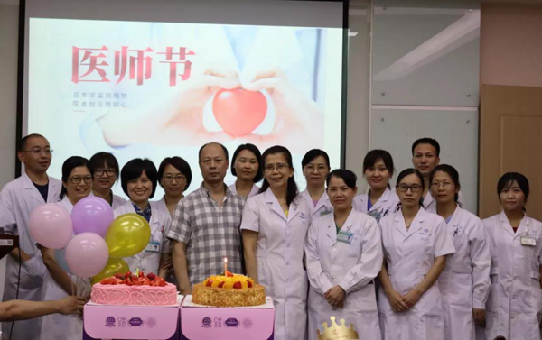 医师节早上,彭良节院长、运营部黄继红经理及行政人员等7点就到达医院,提前将鲜花和贺卡准备好,于六楼生殖中心现场为我院可敬可爱的医生们献上美艳的鲜花,表达衷心的感谢和祝福。