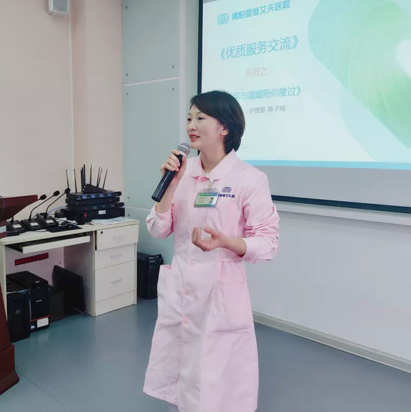 平凡之处见真情,细微之处暖人心。优质服务,不是一个人,一句话,而是一支团队,一条无缝连接的流程,每一个细节都需要用心、用情,呈现医者以及医院的温暖、责任和大爱。愿揭阳爱维艾夫医院的每一名员工,都能在今后的工作中秉承从医初心,从一个微笑、一个拥抱、一句问候……从服务过程中的点滴小事做起,为不孕不育家庭提供更优质温暖的服务。